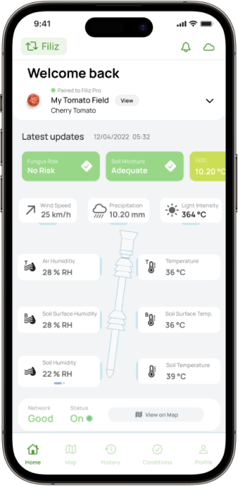 FieldStation comes with the IoTrack app, offering intuitive data visualization based on real-time ag sensor inputs, soil analysis, and expert agronomist support. It also integrates with Doktar App, providing easy access to essential field data to optimize operations.