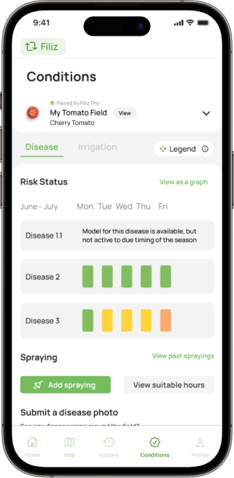 Receive alerts on important issues such as disease risk or water stress, and monitor field conditions from anywhere, at any time.